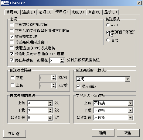 以上设置,不同的FTP软件略微有差别,但只要找到设置中关于“二进制”的地方基本都可以完成设置。以上操作有望能给予大家一定帮助。以上信息由:银象网络整理提供